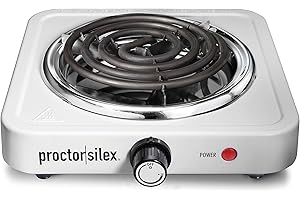 Proctor Silex Electric Single Burner Cooktop Compact and Portable Adjustable Temperature Hot Plate 1200 Watts 34106 Whit