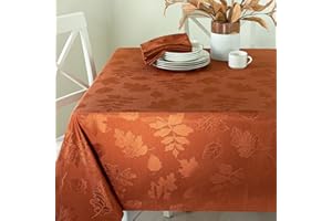 Benson Mills Harvest Legacy Damask Fabric Table Cloth Fall Harvest and Thanksgiving Tablecloth Rust Burnt Orange 60 x 12