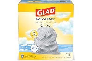 Glad ForceFlex Tall Kitchen Drawstring Trash Bags 13 Gal Fresh Clean Scent with Febreze 110 Ct