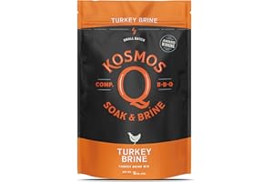 Kosmos Q Turkey Brine è un mix per brining di 16 once, ideale per cucinare interi tacchini, affumicati, arrostiti in forno o fritti. Il prodotto contiene una miscela premiscelata di sale e zucchero che aiuta a mantenere la carne umida durante la cottura e produce un succo ristretto saporito. La brine può essere utilizzata anche su altri tipi di carne come pollame o maiale.